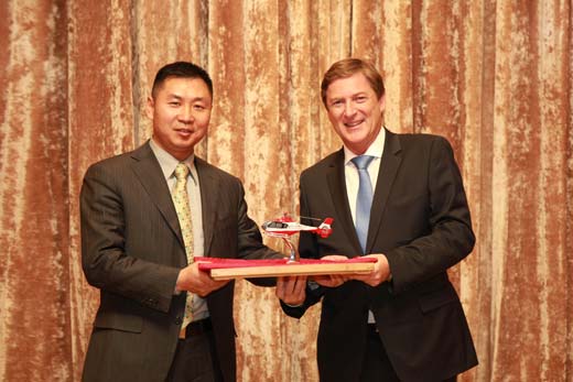 周巍總裁在簽約儀式上致辭。周總表示,從去年正式啟動(dòng)直升機(jī)業(yè)務(wù)以來(lái),經(jīng)過(guò)近一年的探索,我公司已初步確立了直升機(jī)的發(fā)展方向,未來(lái)將致力于開(kāi)拓公務(wù)型直升機(jī)和旅游觀(guān)光型直升機(jī)兩類(lèi)高端業(yè)務(wù)。通過(guò)與歐直的合作,我公司將不斷推出適合國(guó)內(nèi)直升機(jī)發(fā)展的金融產(chǎn)品,力爭(zhēng)闖出一條中國(guó)直升機(jī)租賃的新道路,在成功開(kāi)創(chuàng)中國(guó)公務(wù)機(jī)市場(chǎng)后,再次推動(dòng)中國(guó)通用航空業(yè)的發(fā)展。