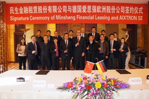 2012年2月9日,我公司在香山與德國愛思強(qiáng)股份有限公司(AixtronAG,以下簡稱“愛思強(qiáng)”)就在華合作開展業(yè)務(wù)簽署了諒解備忘錄。我公司融資租賃事業(yè)部總裁王峰與愛思強(qiáng)首席財(cái)務(wù)官沃爾夫?qū)げ祭啄壬╓olfgang Breme)出席簽字儀式并簽署諒解備忘錄。根據(jù)協(xié)議,雙方將合作開拓半導(dǎo)體產(chǎn)業(yè)沉積設(shè)備(MOCVD)租賃中國市場。