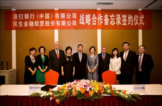 2012年6月12日,我公司與渣打銀行(中國(guó))有限公司在北京簽訂戰(zhàn)略合作備忘錄。我公司總裁周巍、常務(wù)副總裁王蓉、渣打銀行(中國(guó))有限公司金融客戶部大中華區(qū)董事總經(jīng)理李文苑、金融客戶部中國(guó)區(qū)董事總經(jīng)理張曉蕾等出席了簽約儀式。此次雙方戰(zhàn)略合作的內(nèi)容主要包括但不限于信用授信、項(xiàng)目融資、全球金融市場(chǎng)業(yè)務(wù)等方面。