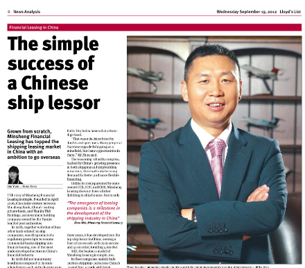 Mr Zhou said: “I’m fully confident that we can get the regulatory supportwe need and our ship leasing business will eventually have a say in the globalshipping industry.”