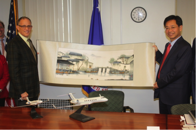 Hochberg先生及董事會成員Loui女士表示,此次與民生金融租賃的融資合作,是該行有史以來第一次與中國金融機構(gòu)合作飛機融資項目,并且融資金額在該行公務機出口融資中達到最高,意義深遠。主席先生希望明年1月能回訪我公司。Loui女士表示,期待與民生藍天控股在機場建設項目上進一步合作。